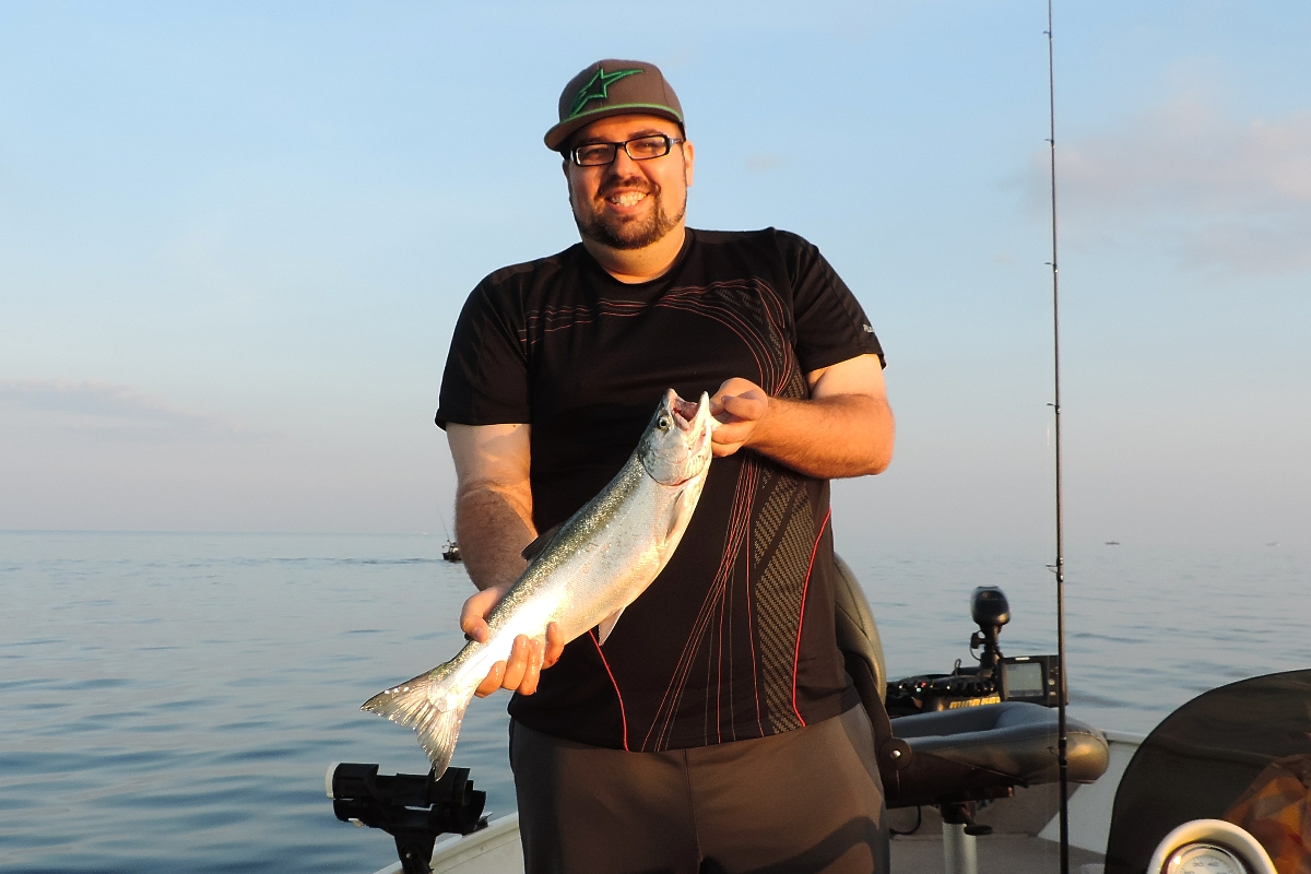 Weight - 4 lb. 1 oz. Length - 22" ------------ Location - Lake Ontario At Port Dalhousie Date - May 28, 2016 Depth - 75' Method - Dipsy Diver Bait - Fly & Flasher Line - 20 lb. Mono